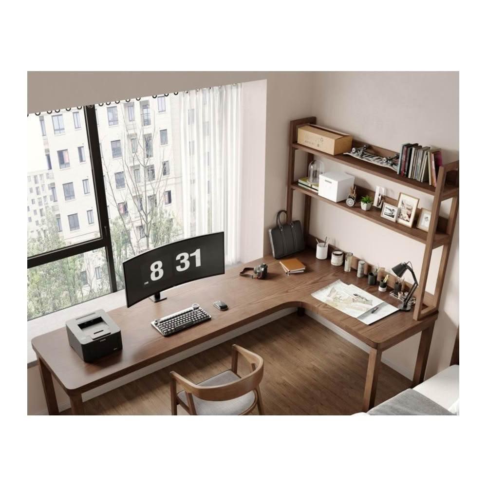 🚛宅配免運🚛 實木轉角雙人書桌子 書架桌子組合 卧室l型角落電腦桌子 學習桌 家用拐角辦公桌子