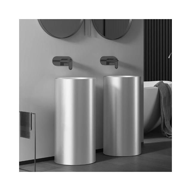 艾萊斯 酒店304不銹鋼立柱盆 落地式一體洗手盆衛生間 藝術洗臉盆白色