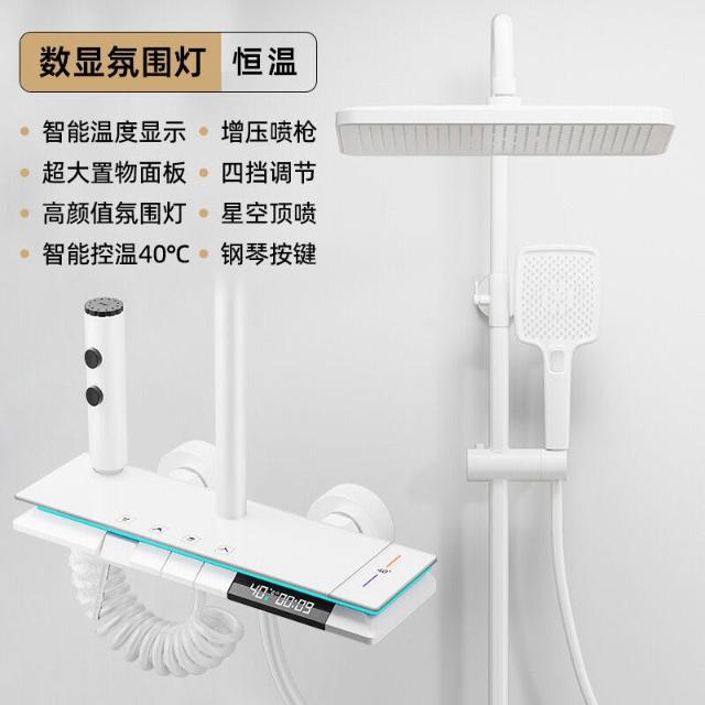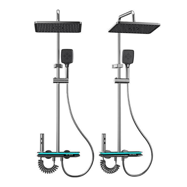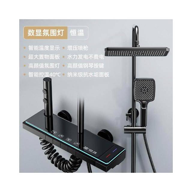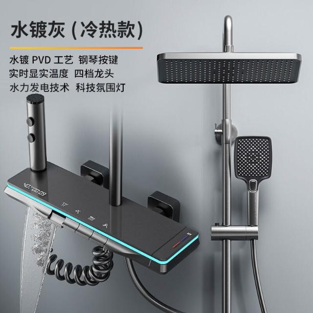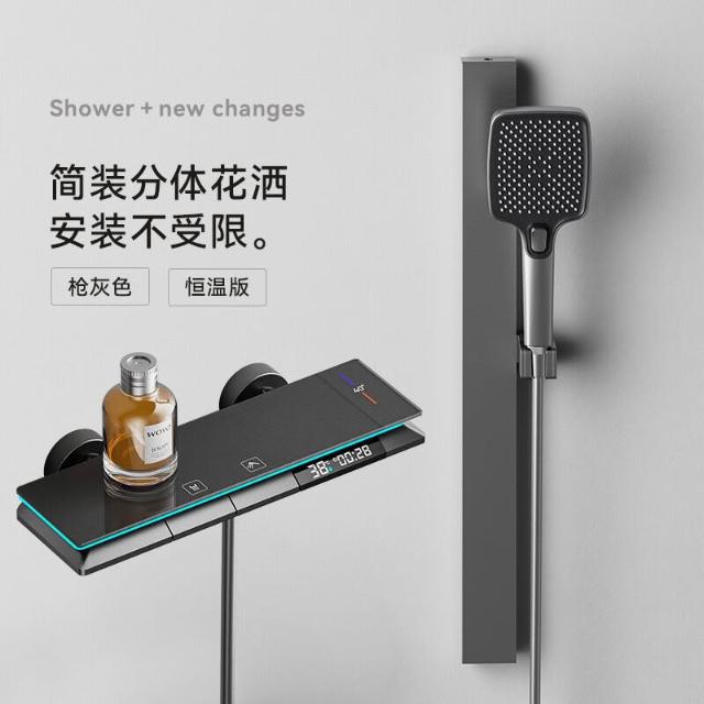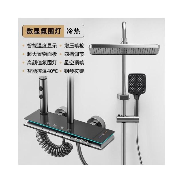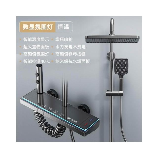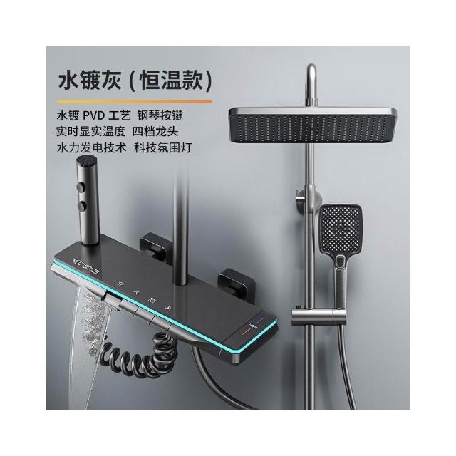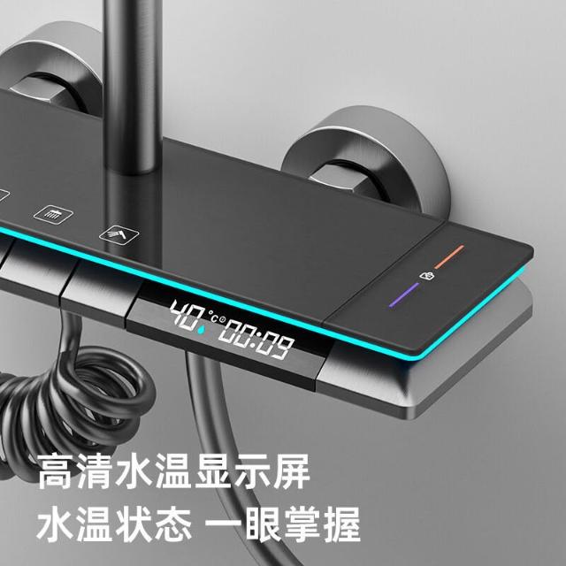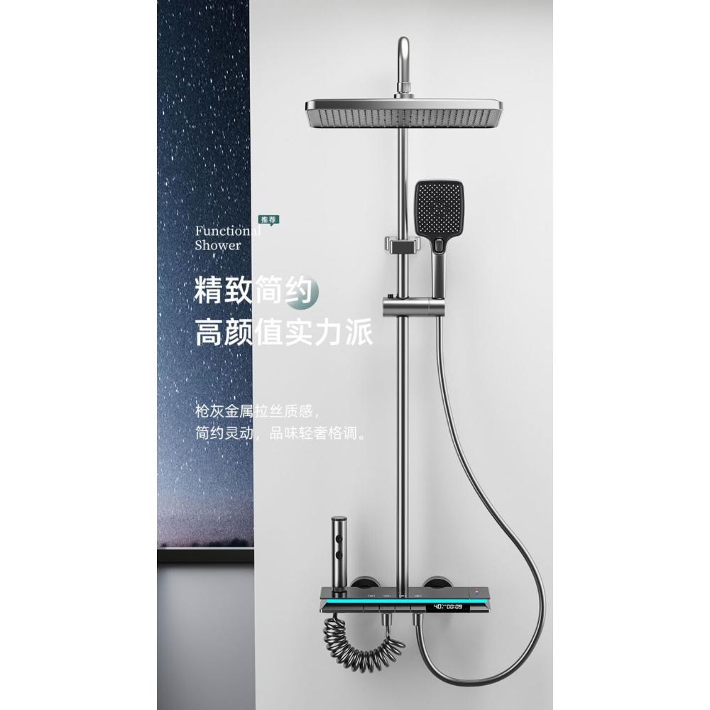 淋浴花灑套裝 槍灰色全銅淋浴器 花灑家用恒溫增壓噴頭浴