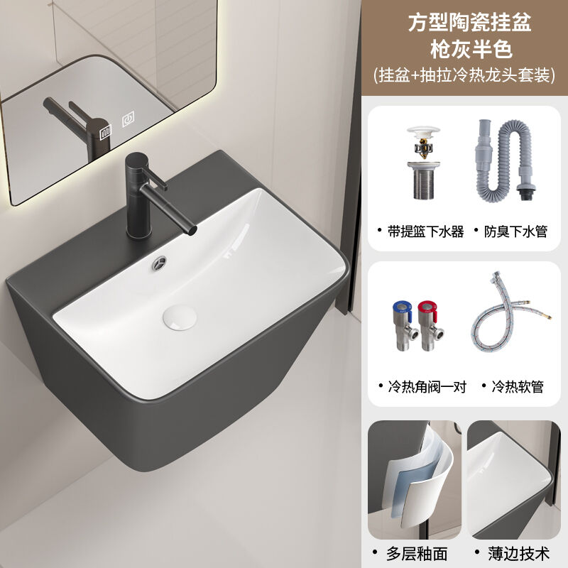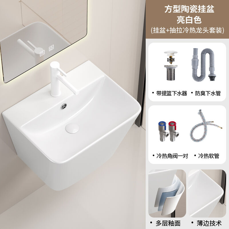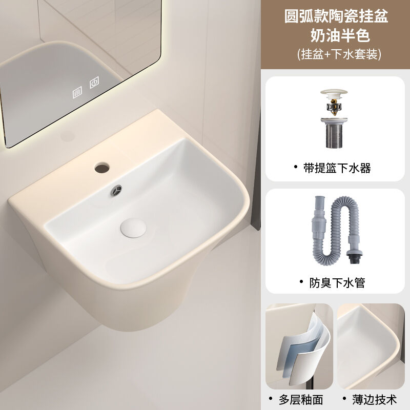 壁掛式陶瓷洗手盆洗臉盆掛墻式 一體衛生間洗漱臺盆衛生間酒店家用