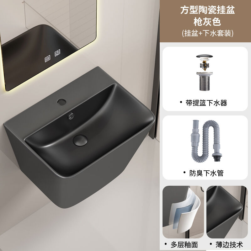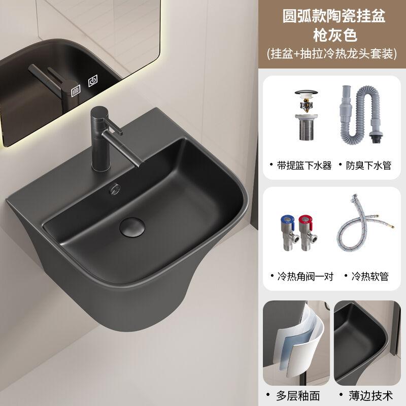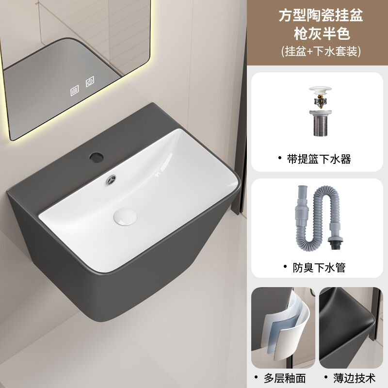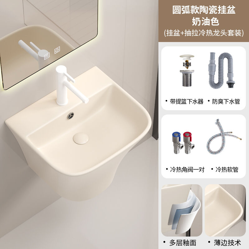壁掛式陶瓷洗手盆洗臉盆掛墻式 一體衛生間洗漱臺盆衛生間酒店家用