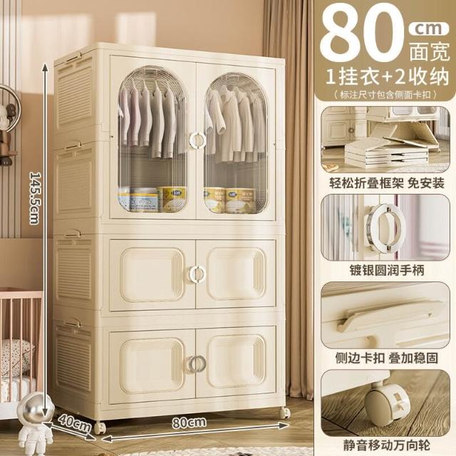 免安裝90寬寶寶衣櫃 兒童衣服收納櫃 嬰兒小衣櫥 塑料臥室簡易儲物櫃