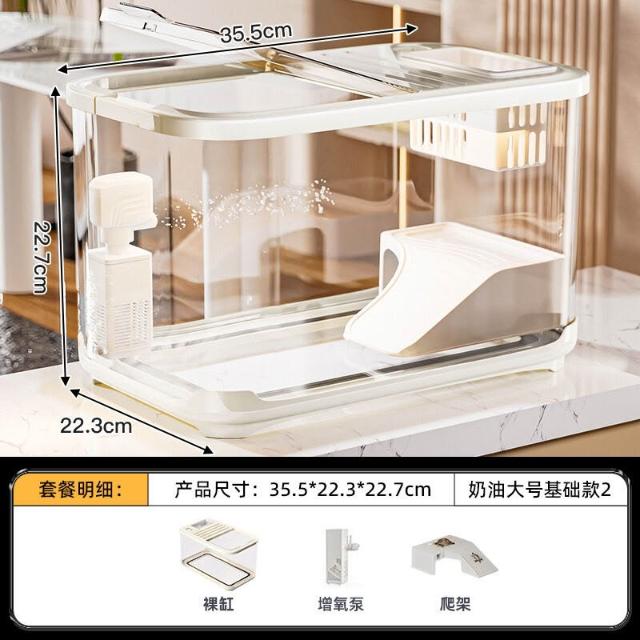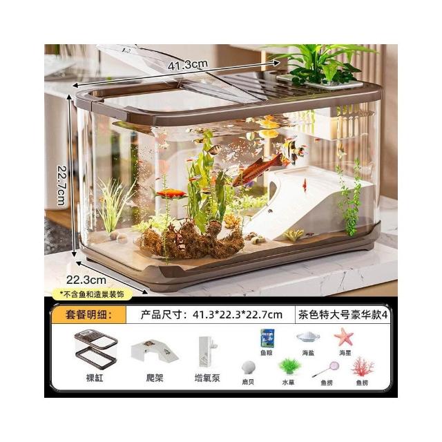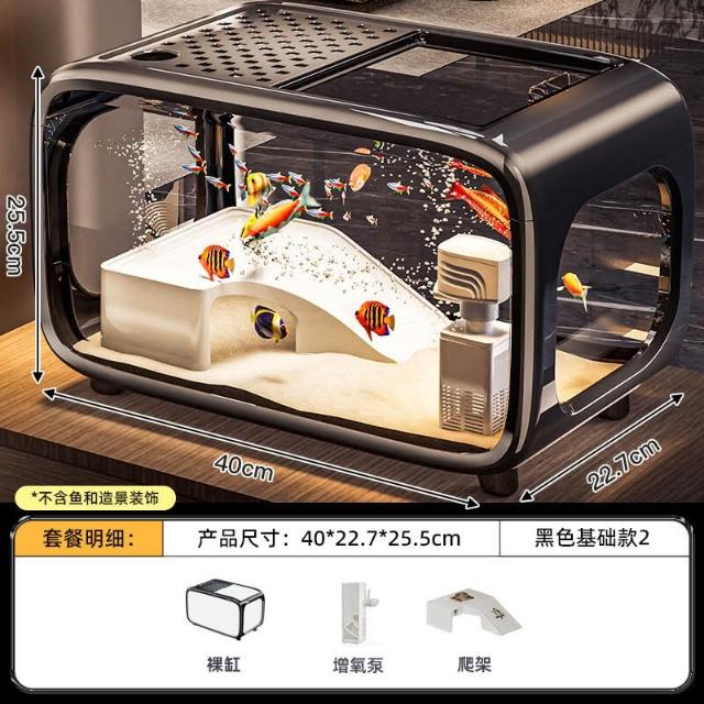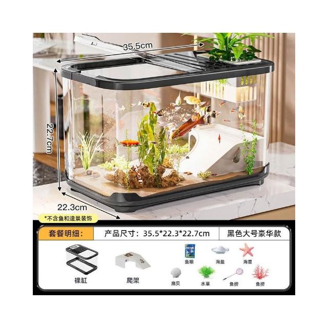 創意魚缸透明帶蓋 水族箱桌面生態金魚缸 客廳裝飾造景觀賞烏龜缸