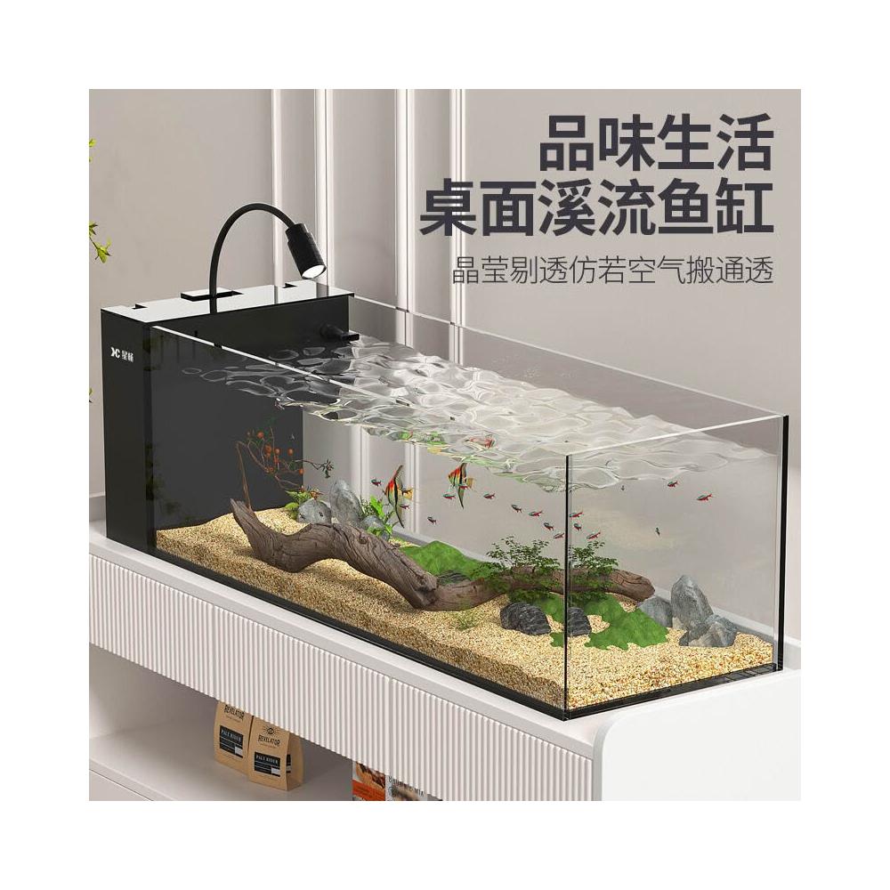 2025新款溪流缸魚缸氧一體式 客廳金晶超白側濾小型玻璃造景全套