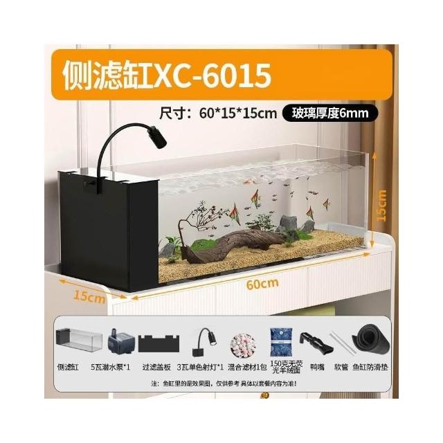 2025新款溪流缸魚缸氧一體式 客廳金晶超白側濾小型玻璃造景全套