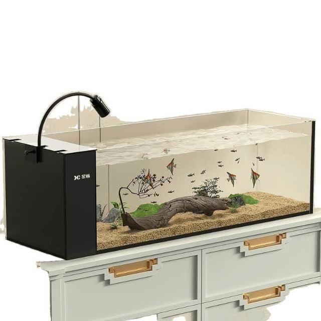 2025新款溪流缸魚缸氧一體式 客廳金晶超白側濾小型玻璃造景全套
