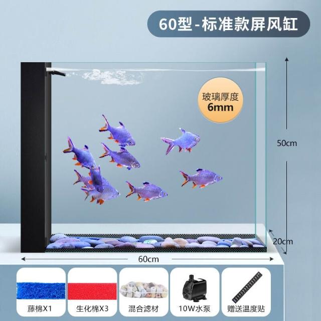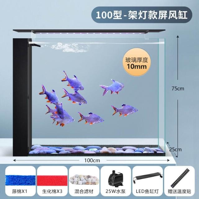 客廳屏風魚缸一體過濾循環超白玻璃魚缸 衛生間半墻魚缸免換水