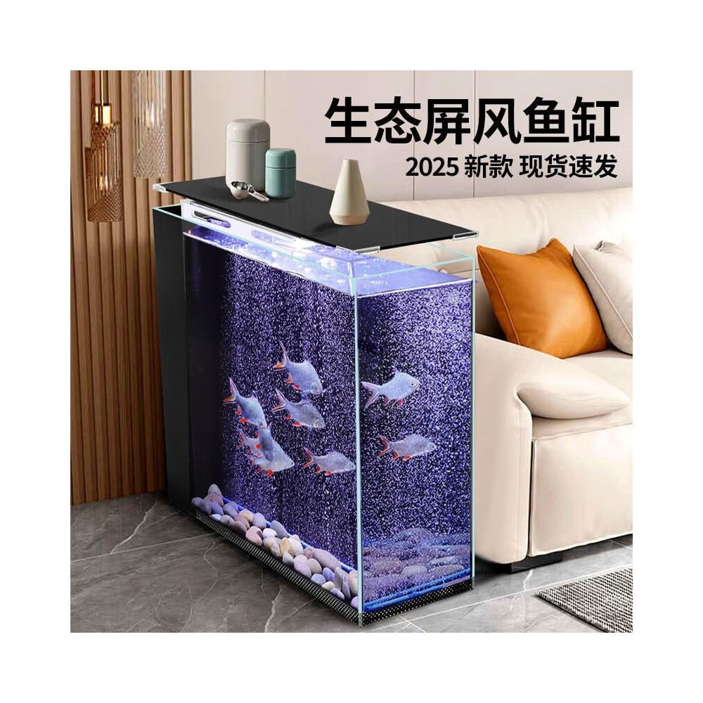 客廳屏風魚缸一體過濾循環超白玻璃魚缸 衛生間半墻魚缸免換水
