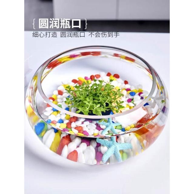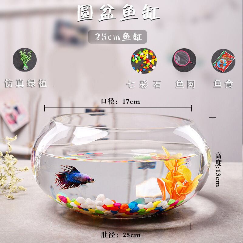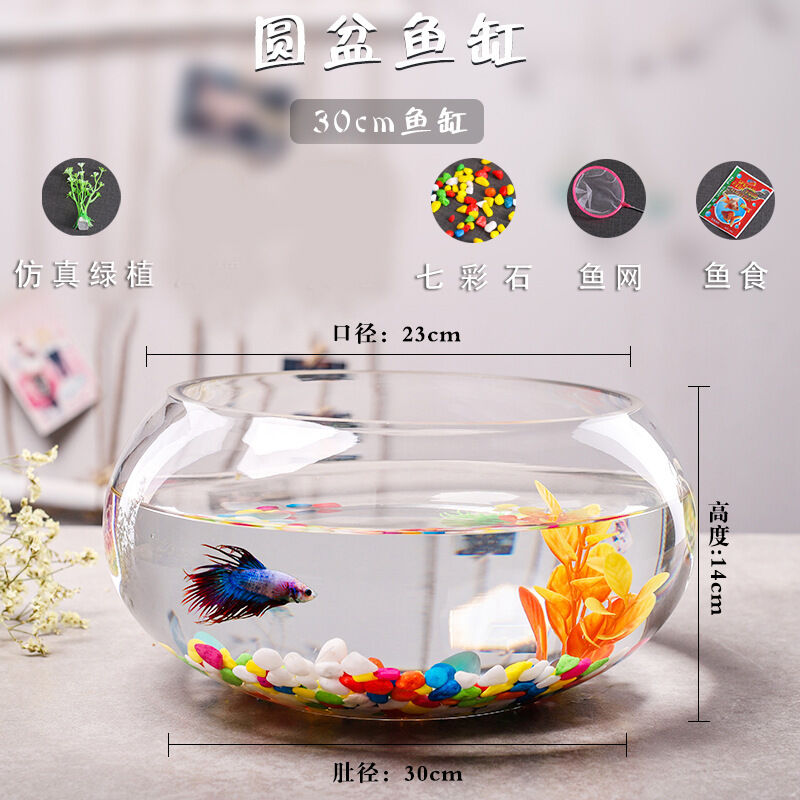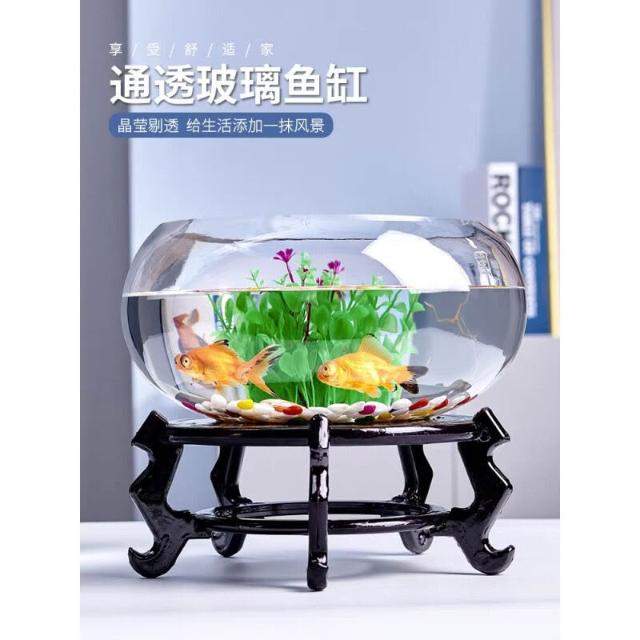 辦公室小魚缸 加厚透明玻璃烏龜缸 客廳家用桌面圓形迷你小型金魚缸