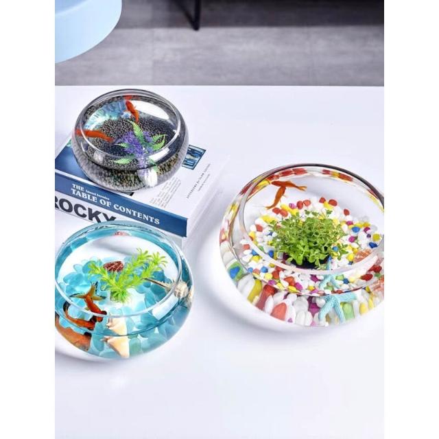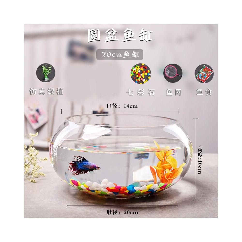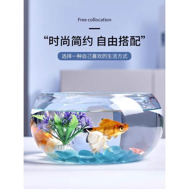 辦公室小魚缸 加厚透明玻璃烏龜缸 客廳家用桌面圓形迷你小型金魚缸