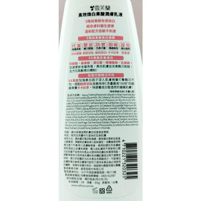 雪芙蘭雪芙蘭 高效美白乳液 美白潤膚乳液 高效透亮 高效煥白 美白乳液 果酸潤膚乳液 350g