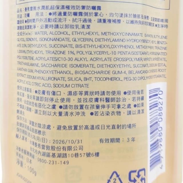 曼秀雷敦曼秀雷敦 水潤肌柔光透亮防曬飾底凝露 薰衣草 80g 水潤肌超保濕極效水感防曬露 極效防禦防曬露