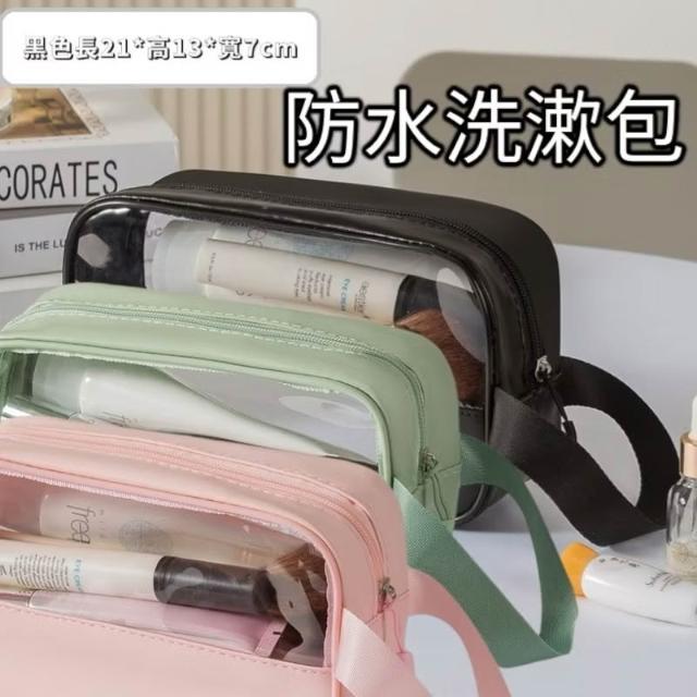 馬卡龍色系 PVC防水洗漱包 出差旅行 便攜手提 化妝品 收納包 大容量透明化妝包