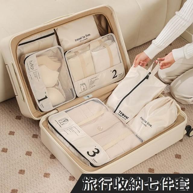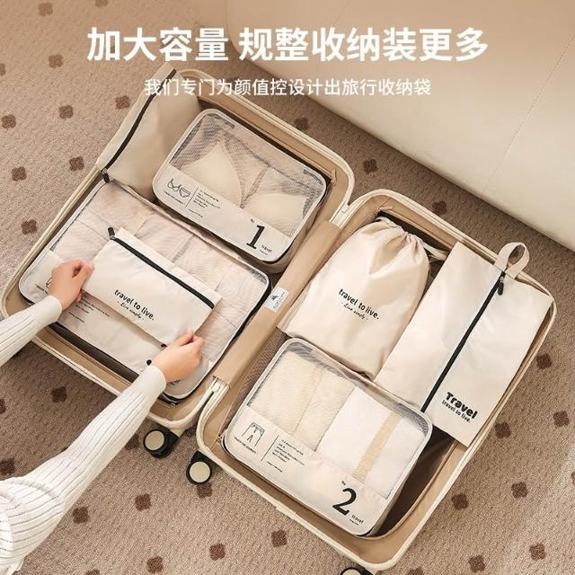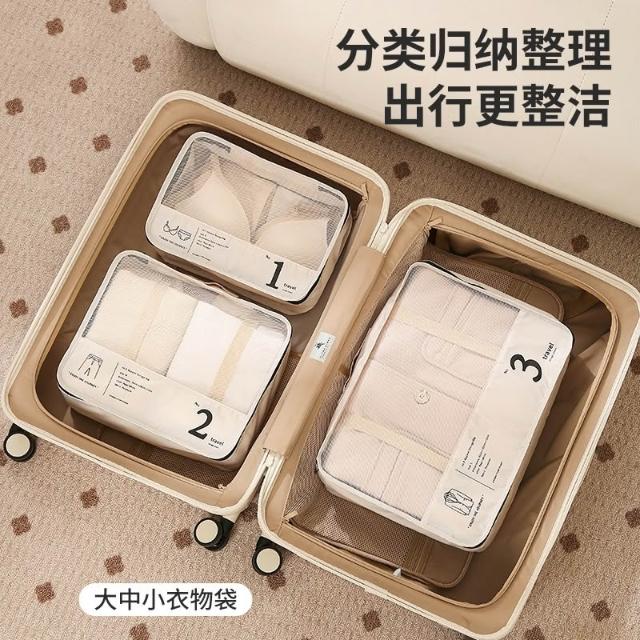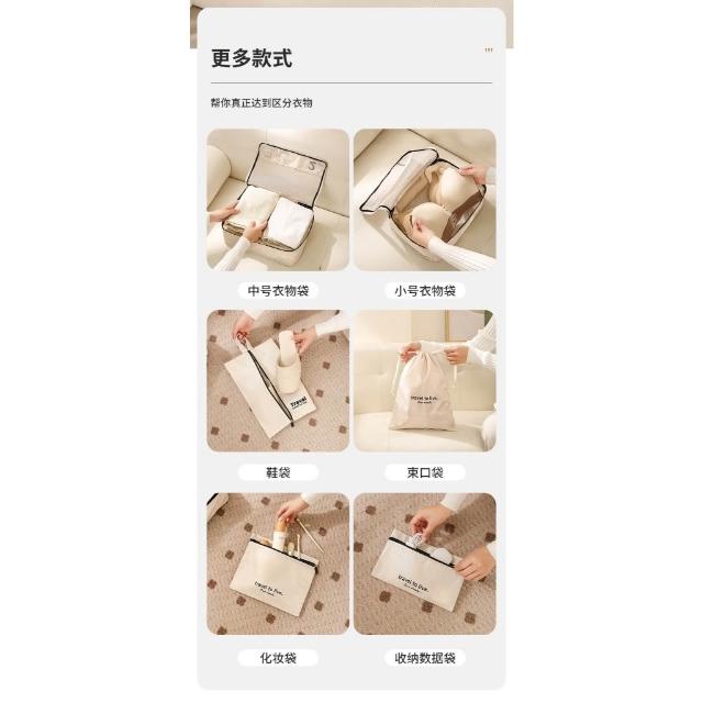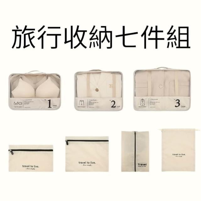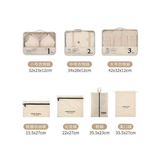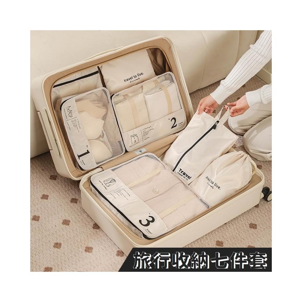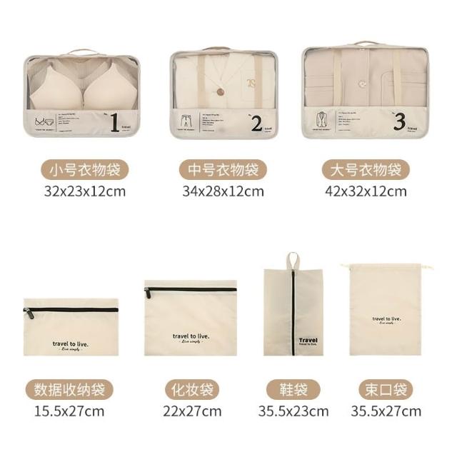 旅行收納袋 7件套 奶茶色 內衣褲襪子分類整理 七件套折疊鞋袋 衣物收納 牛津布
