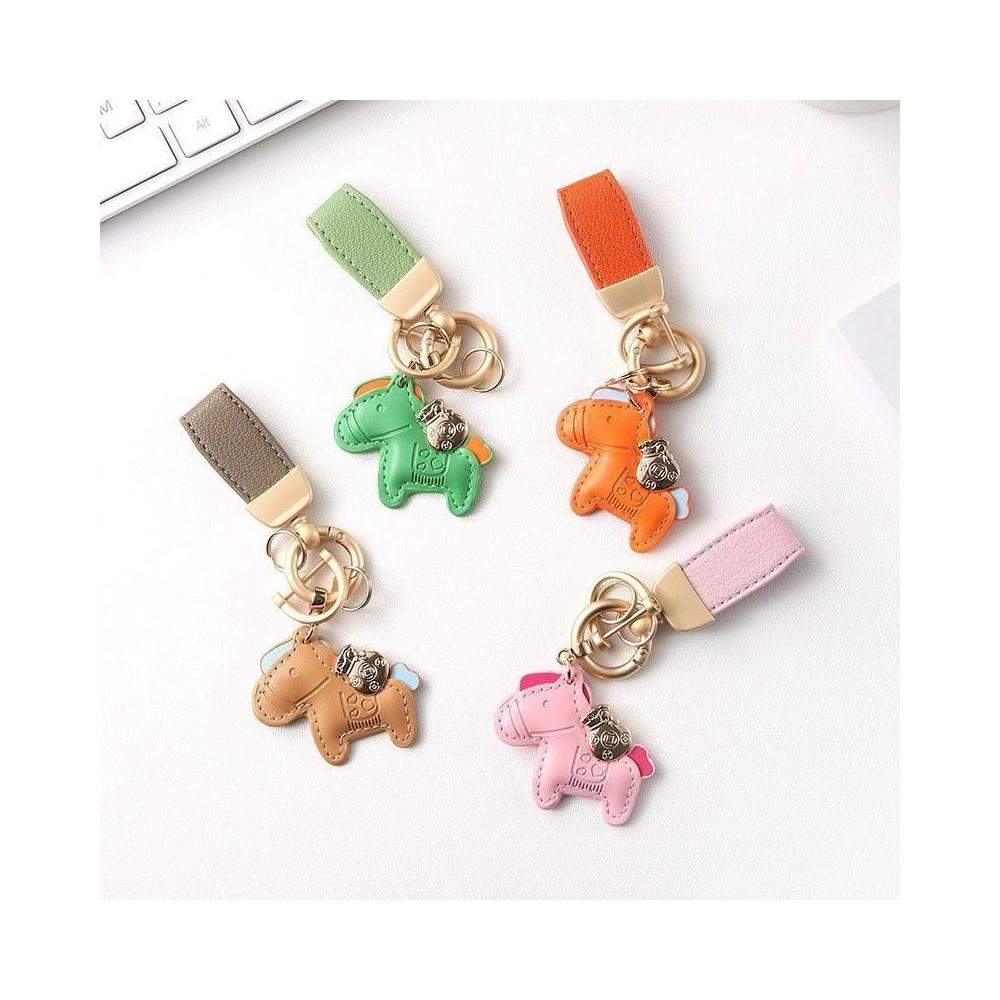 馬上有錢手繩鑰匙扣 皮革卡通小馬掛件 創意個性鎖匙鏈圈 掛飾情侶款 包包吊飾 汽車鑰匙扣