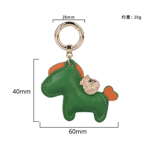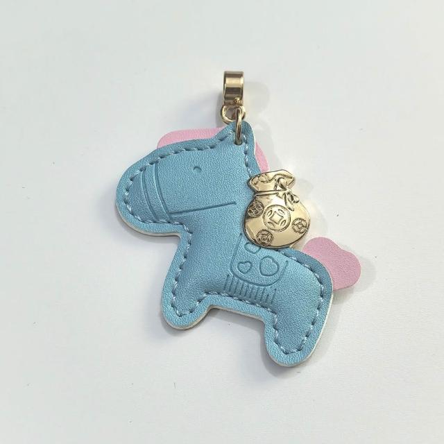 馬上有錢手繩鑰匙扣 皮革卡通小馬掛件 創意個性鎖匙鏈圈 掛飾情侶款 包包吊飾 汽車鑰匙扣