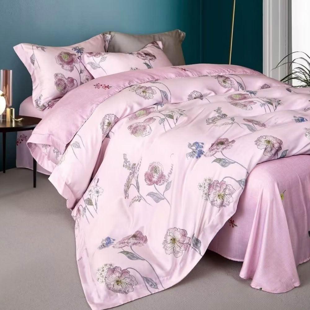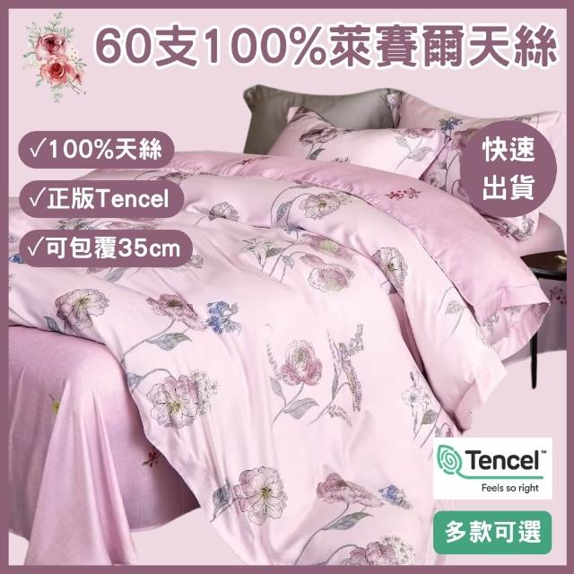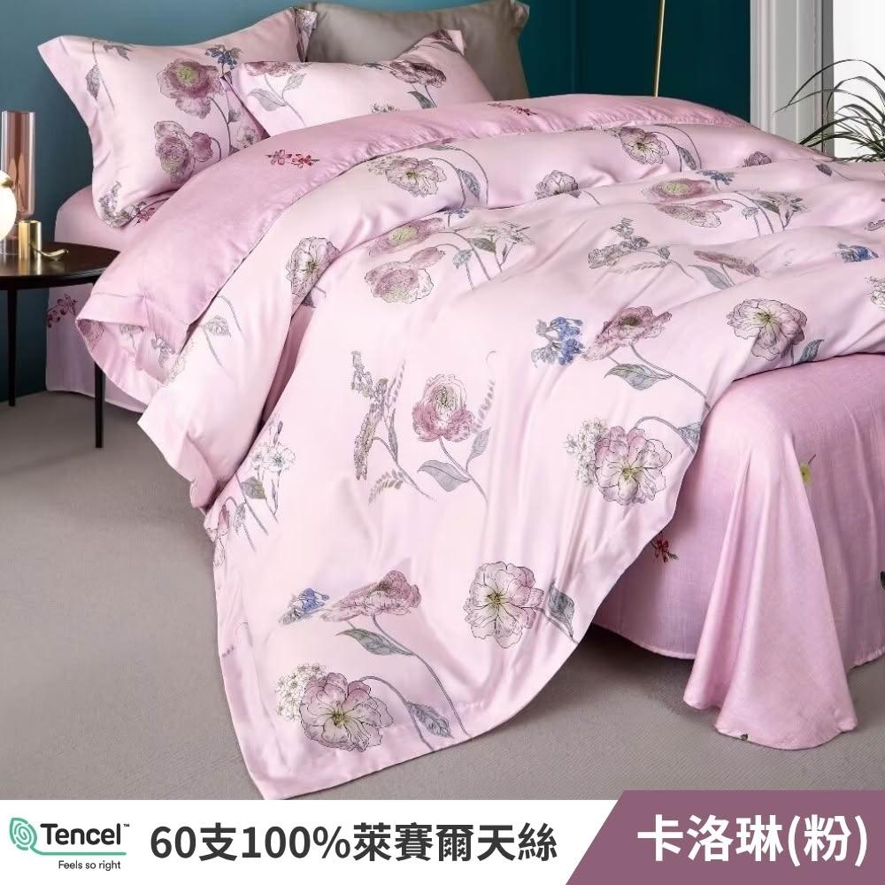 夢露家居 奢華60支天絲萊賽爾兩用被床包組-特大7尺 100%純天絲/四件組/床單/床罩 卡洛琳(粉)