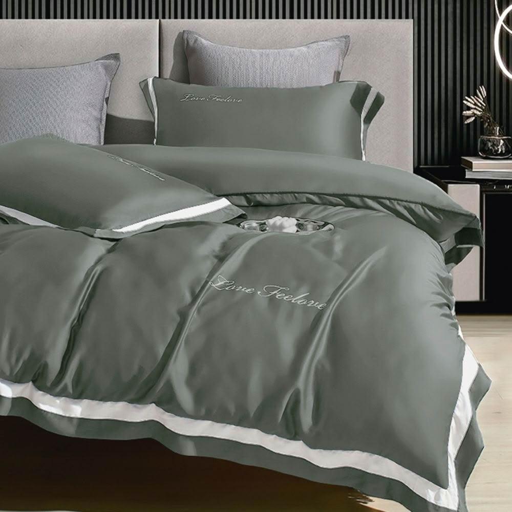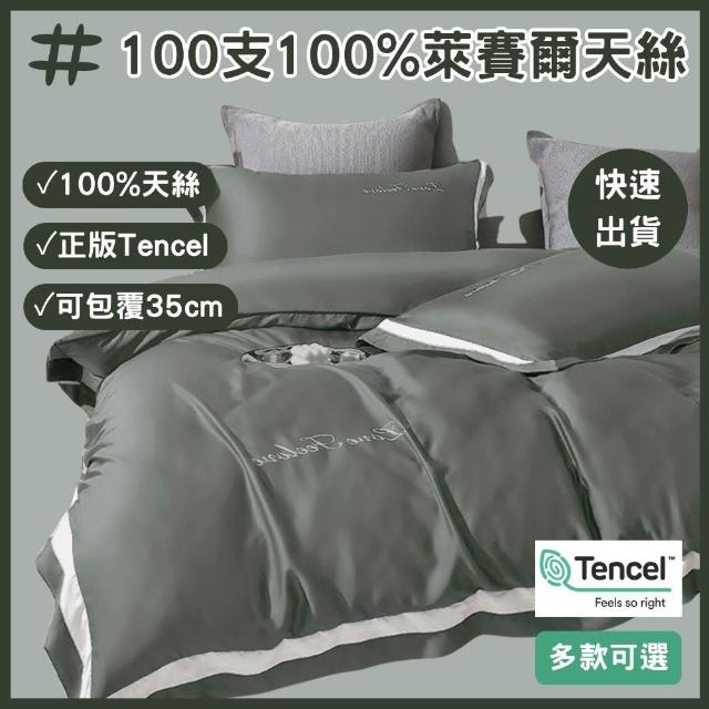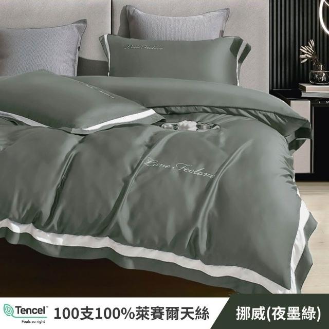 夢露家居 皇家100支天絲萊賽爾兩用被床包組-加大6尺 100%純天絲/四件組/床單/床罩 挪威(夜墨綠)