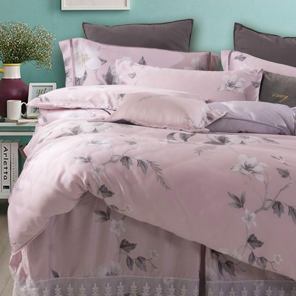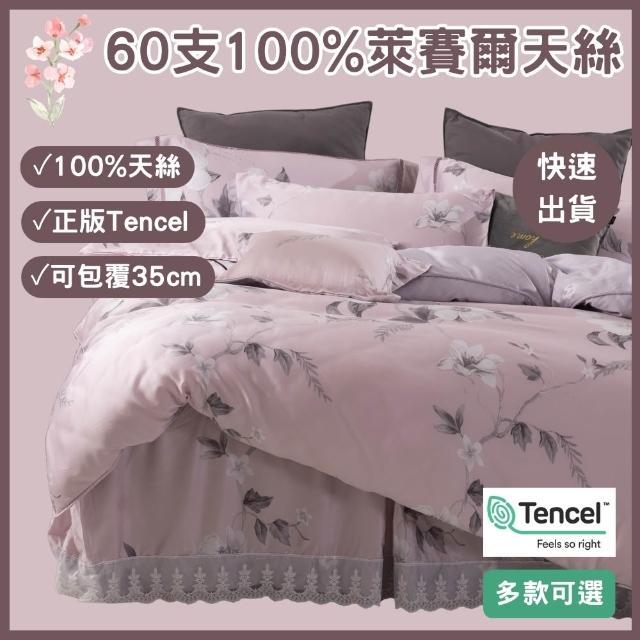 夢露家居 奢華60支天絲萊賽爾兩用被床包組-雙人5尺 100%純天絲/四件組/床單/床罩 戀戀花語(咖)