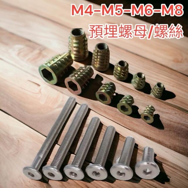 1單位10顆 M4 M5 M6 M8 螺絲 內外牙螺母 預埋螺母 內六角內外牙螺母 梯形螺母 木工 家具螺絲