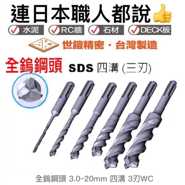 台灣製造 12 14 16 18 20mm世鎧精密 四溝 三刃 SDS PLUS 銳利 水泥鑽尾