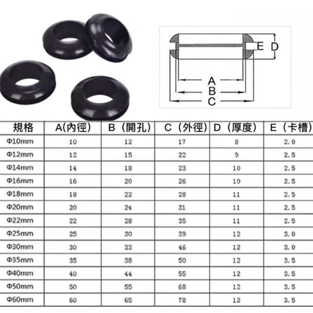 1單位5個 雙面護線圈 密封圈 護線圈 橡皮圈 橡膠圈 出線環 Φ10~60mm 護線套 黑色