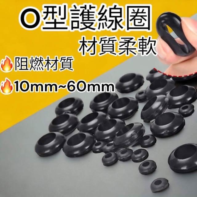 1單位5個 雙面護線圈 密封圈 護線圈 橡皮圈 橡膠圈 出線環 Φ10~60mm 護線套 黑色