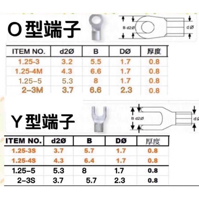 1.25到2平方 連接器 電線 電纜 O型 Y型裸端子 Y型端子 開口端子 裸端子 壓著端子 壓接端子 端子 U型