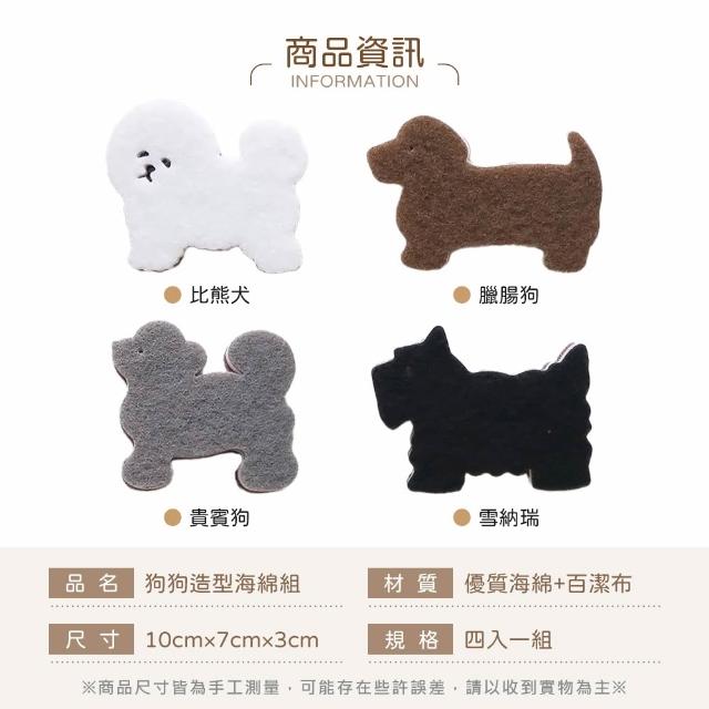BD購物 小狗造型海綿 4入組 清潔海綿 雙面用百潔布 菜瓜布 廚房百潔布 鍋具清潔刷 洗碗海綿刷 雙面清潔布 菜瓜布