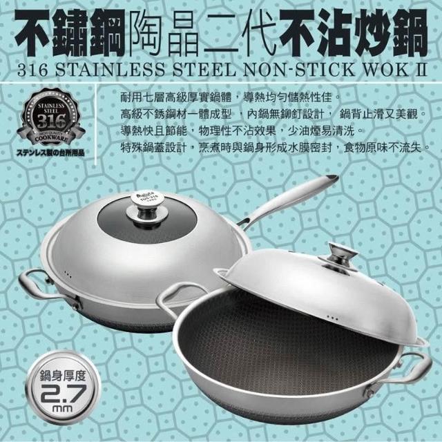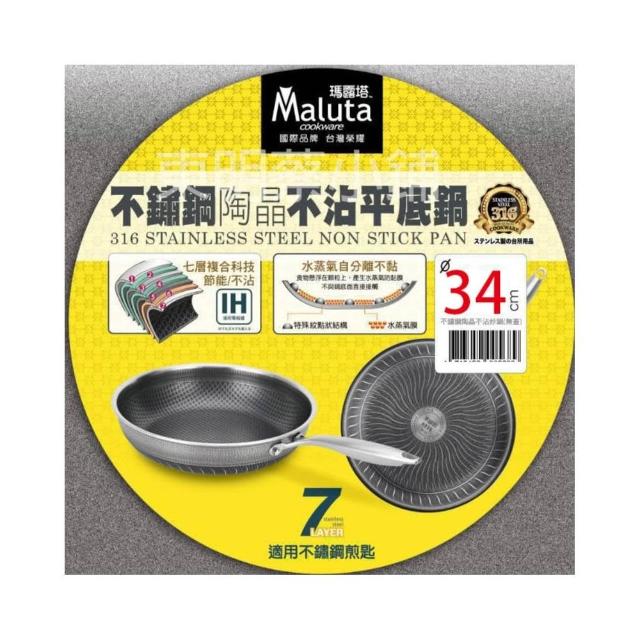 Maluta免運💥新三代 直播熱銷 🇹🇼台灣製 瑪露塔 316 不鏽鋼陶晶三代不沾鍋 34/36/40cm 炒菜鍋 平底鍋