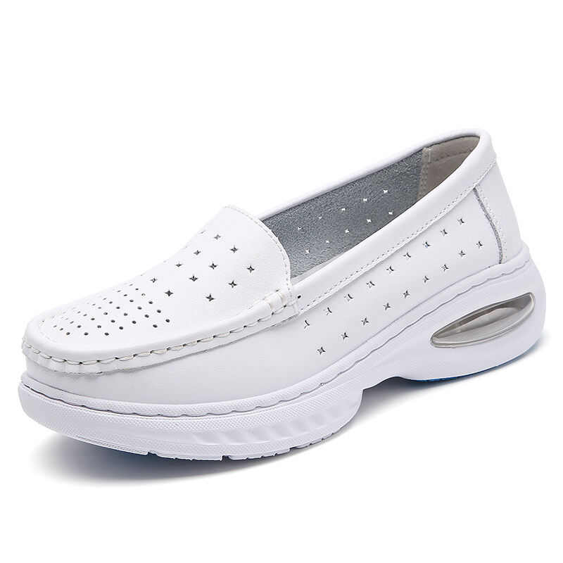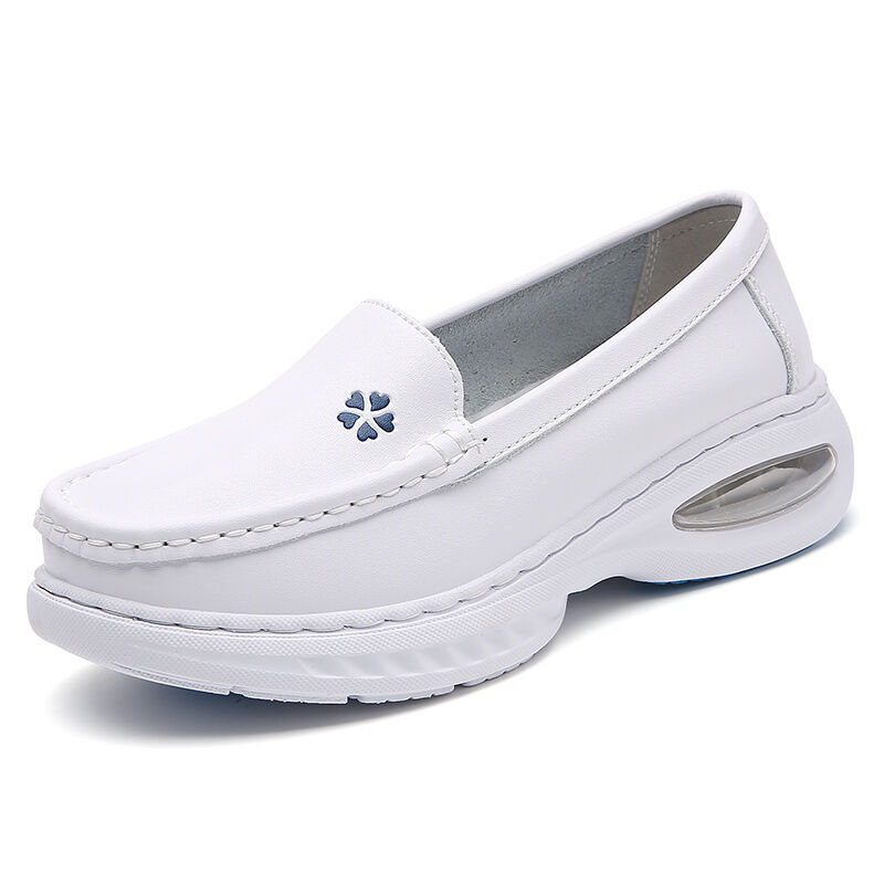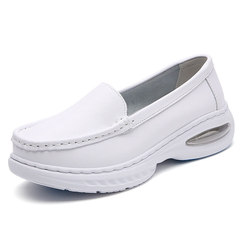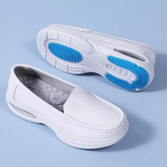 護士鞋女帆布鞋軟底透氣久站不累腳白色醫護鞋舒適防滑平底鞋一腳蹬小白鞋耐磨氣墊鞋真牛皮運動休閒鞋內置大氣墊縫製鞋坡跟懶人鞋