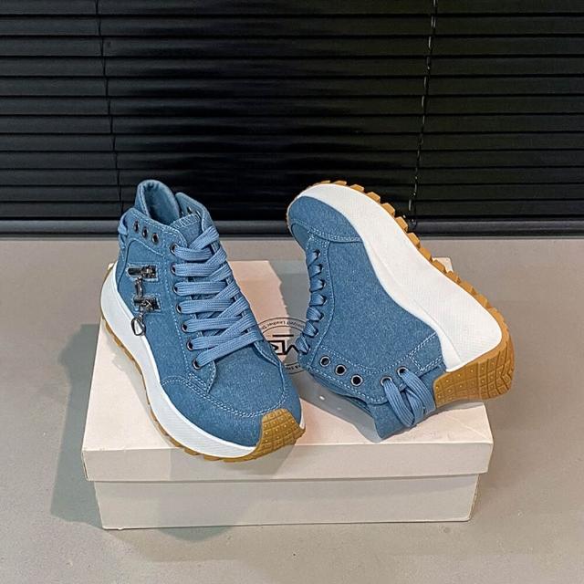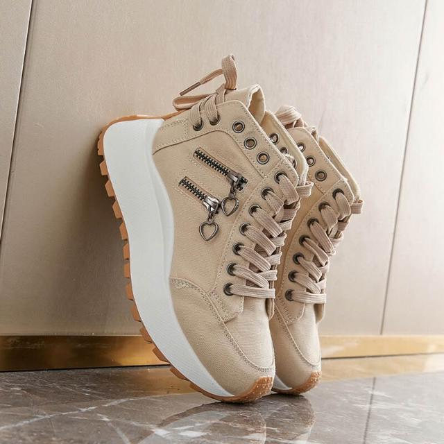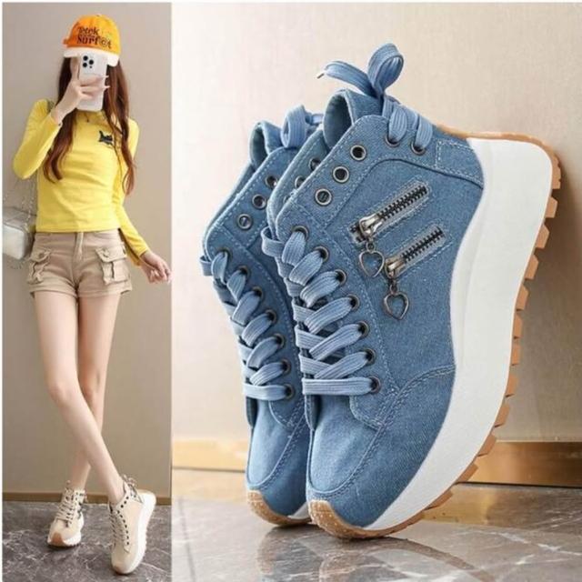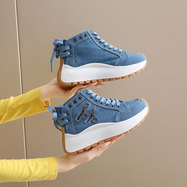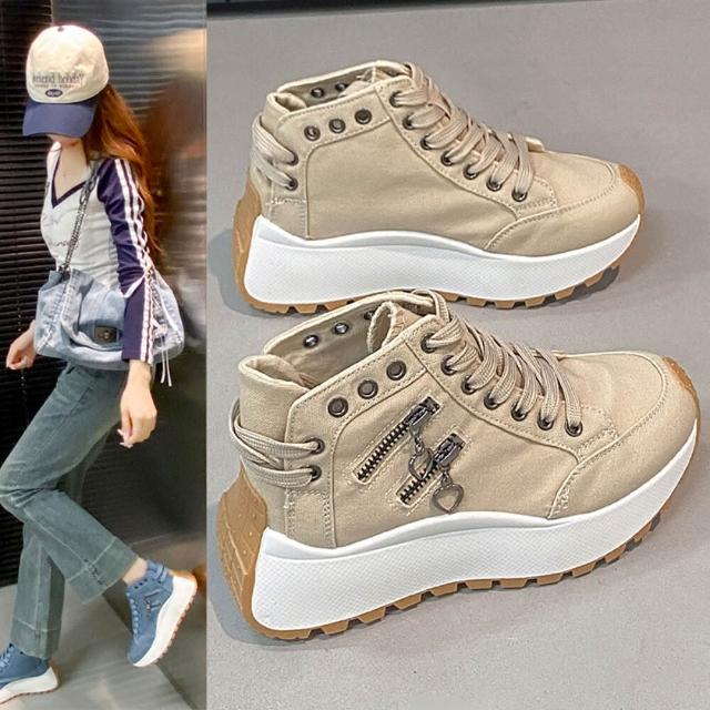帆布鞋女厚底新款高幫高筒鞋春夏季透氣增高簡約風休閑鞋耐磨防滑馬丁靴圓頭運動鞋不磨腳厚底鞋鬆糕底百搭舒適柔軟板鞋牛仔黑女鞋
