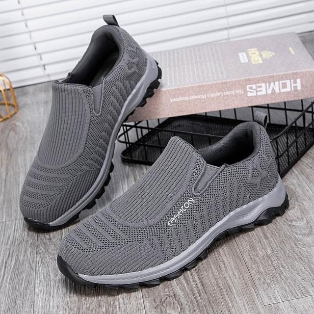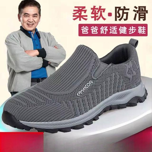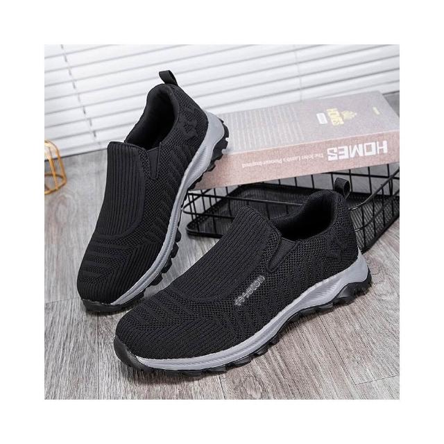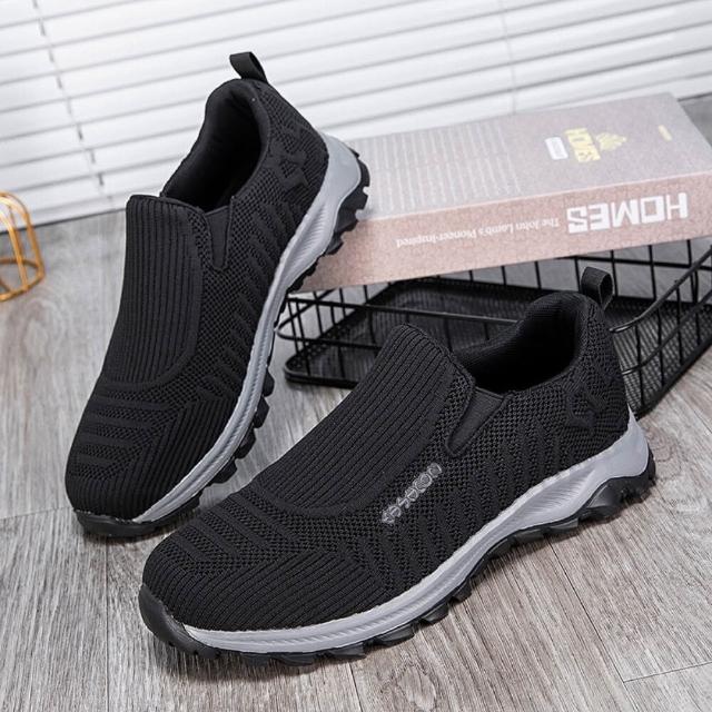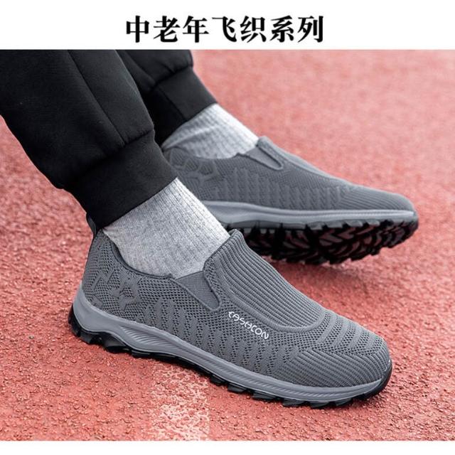 健走鞋男大碼爸爸鞋加寬媽媽鞋布鞋男軟底不累腳老人鞋爺爺鞋舒適懶人鞋一腳蹬防水止滑耐磨柔軟徒步登山休閒運動鞋黑色套鞋飛織鞋