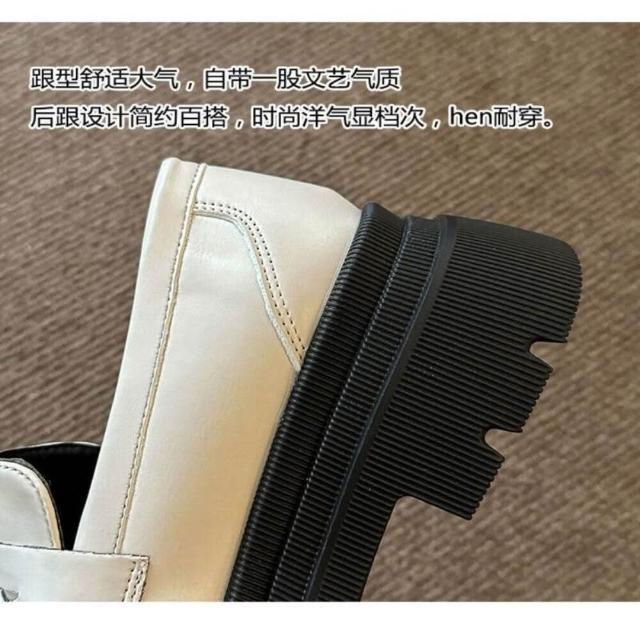 樂福鞋女厚底白色日系復古小皮鞋春秋季新款粗跟法式jk鞋子止滑耐磨瑪莉珍舒適真皮女鞋圓頭寬楦增高輕便平底鞋吸濕透氣一腳蹬鞋