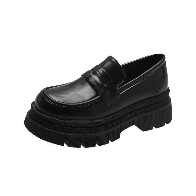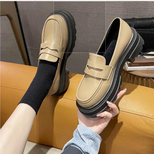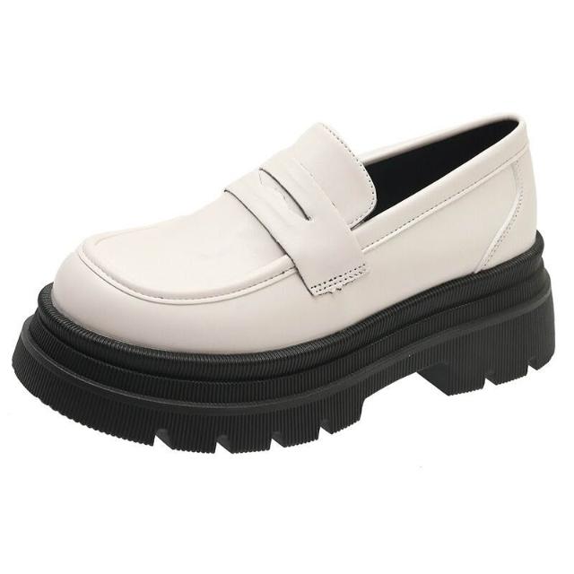 樂福鞋女厚底白色日系復古小皮鞋春秋季新款粗跟法式jk鞋子止滑耐磨瑪莉珍舒適真皮女鞋圓頭寬楦增高輕便平底鞋吸濕透氣一腳蹬鞋