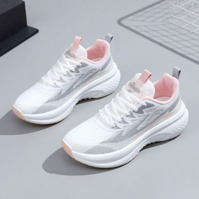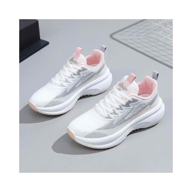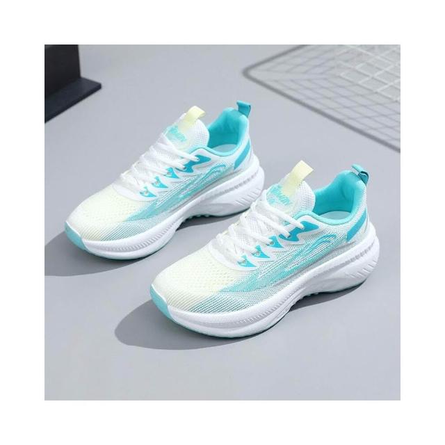 運動鞋女寬楦大尺碼久站舒適防滑慢跑鞋透氣輕便網面鞋時尚百搭飛織休閑真氣墊登山鞋中老年爸爸媽媽厚底增高不磨腳防臭薄款健走鞋
