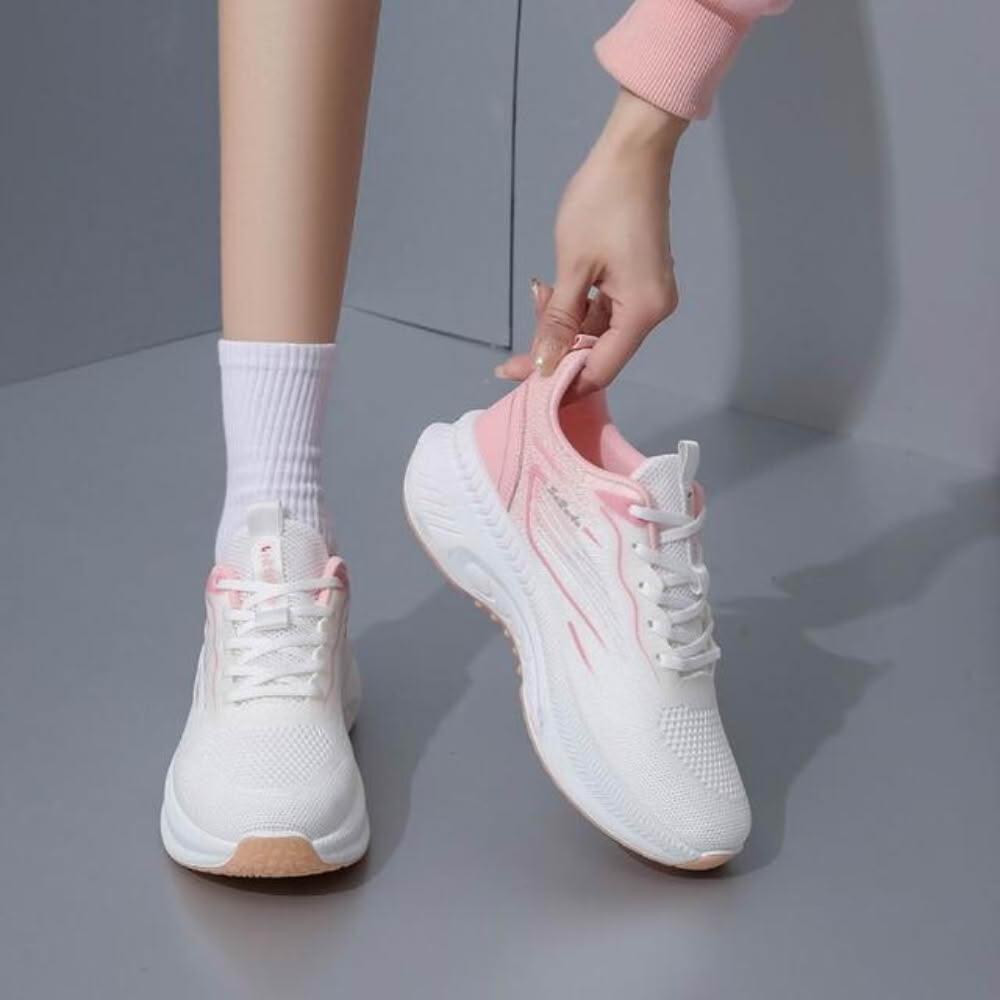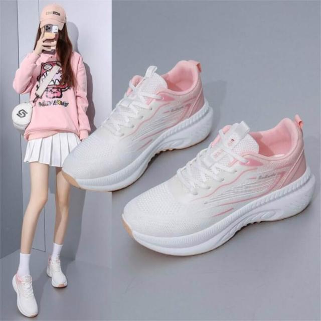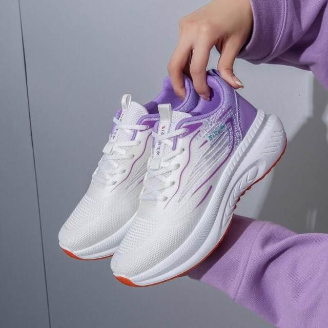運動鞋女寬楦大尺碼久站舒適防滑慢跑鞋透氣輕便網面鞋飛織登山鞋中老年媽媽厚底增高不磨腳防臭薄款健走鞋女鞋耐磨休閒鞋小白鞋