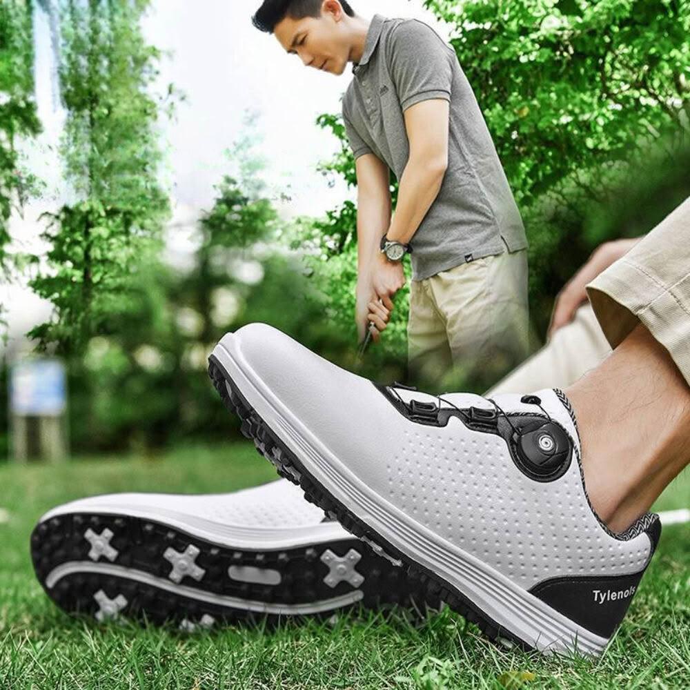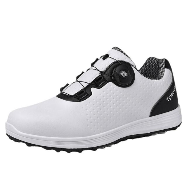 高爾夫球鞋男防水運動鞋下場訓練球鞋防側滑無釘GOLF運動風休閒鞋久站舒適不累腳防滑慢跑鞋圓頭耐磨懶人鞋個性新潮旋轉紐扣鞋