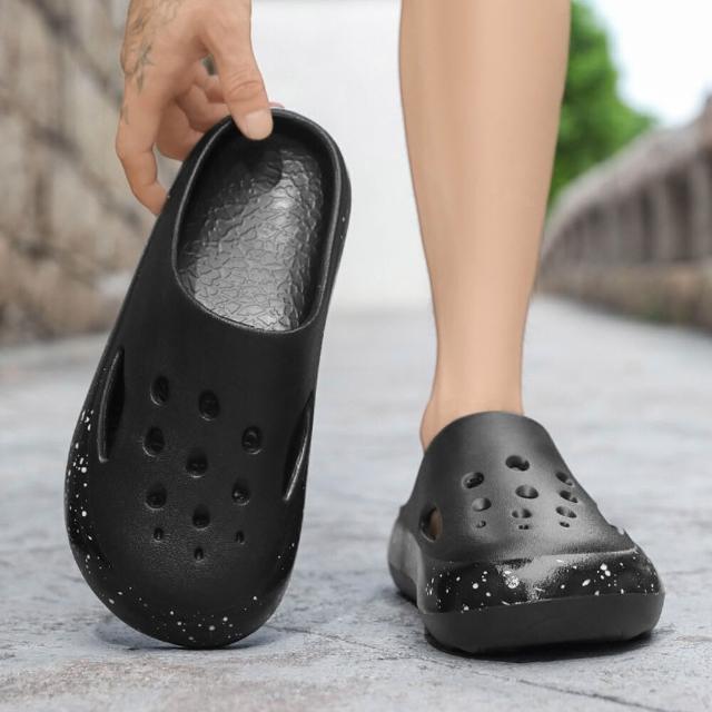 大尺碼eva包頭拖鞋情侶款拖鞋男款厚底雙色拖鞋男涼鞋大尺碼日系簡約男士涼拖男沙灘拖鞋高級感厚底款防滑涼鞋夏季防水止滑耐磨