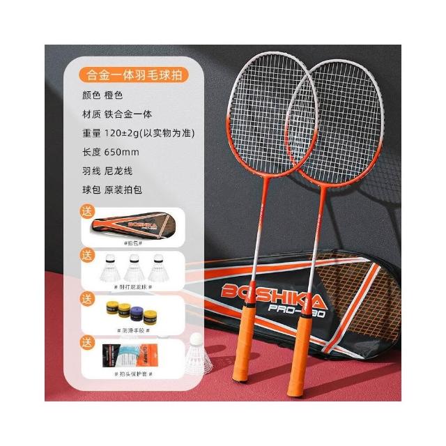 羽球拍成人羽球拍羽毛球拍羽球用品合金一體羽毛球拍親子套裝帶球初學訓練羽拍組2支羽毛球拍+1拍袋+3顆尼龍羽球