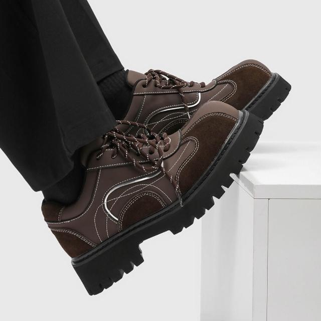 德比鞋男增高拼接休閑皮鞋高級感朋克大碼厚底大頭鞋休閑運動鞋男鞋阿甘厚底百搭通勤學生潮鞋男四季運動鞋男慢跑鞋防水防滑登山鞋子輕量透氣專業馬拉松健走跑鞋大尺碼男生戶外久站止滑厚底寬楦休閒鞋中大童舒適男鞋