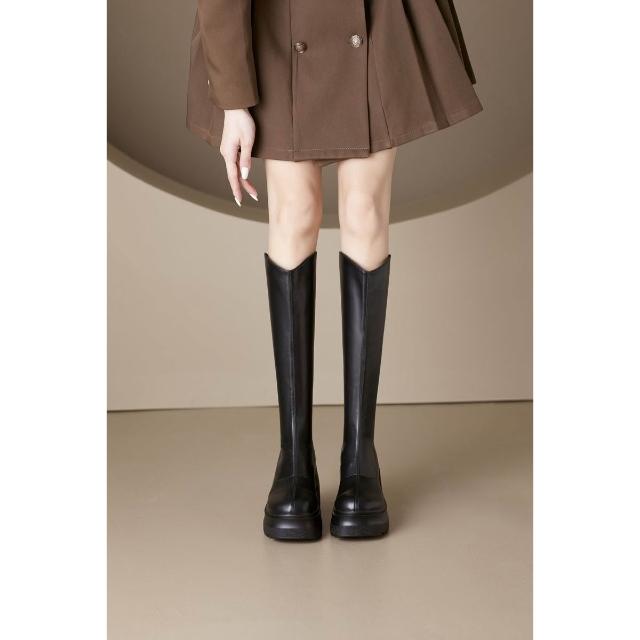 長筒靴粗跟長筒增高靴子女2025年新款不過膝長靴春高跟騎士靴厚底耐磨瘦瘦靴後拉鍊厚底馬丁靴增高彈力高筒靴防滑拉鍊長筒靴