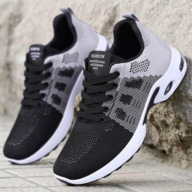慢跑鞋男厚底鞋子運動鞋夏季新款男鞋飛織氣墊鞋系帶輕便跑步鞋防水止滑軟底跑步鞋久站不累腳媽媽鞋增高健走鞋防磨腳健行鞋休閒鞋