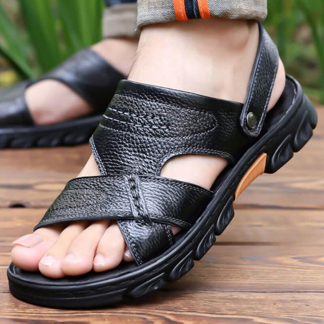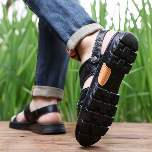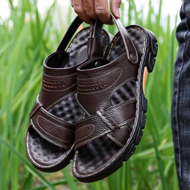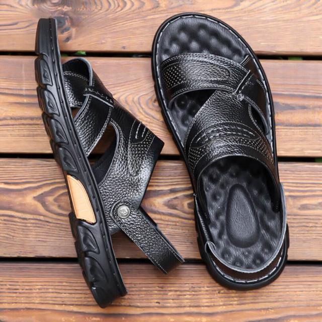 夏季透氣聚氨酯鞋底按摩墊沙灘鞋按摩墊厚底輕量半拖低幫鞋真皮男鞋抗菌消臭增高運動耐磨足弓防滑舒適包頭拖鞋防磨腳外出拖鞋室外拖鞋