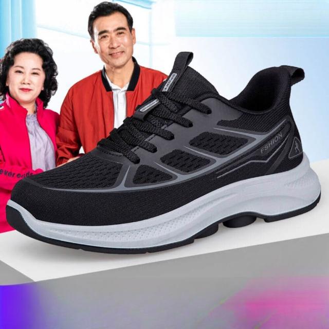 中老年鞋男鞋女鞋橡膠底透氣飛織皮革加寬鞋行特配艾草按摩鞋墊鞋厚底老人鞋大尺碼耐磨久站不累腳爸爸鞋休閒中老年健步鞋緩震輕量運動鞋健行鞋