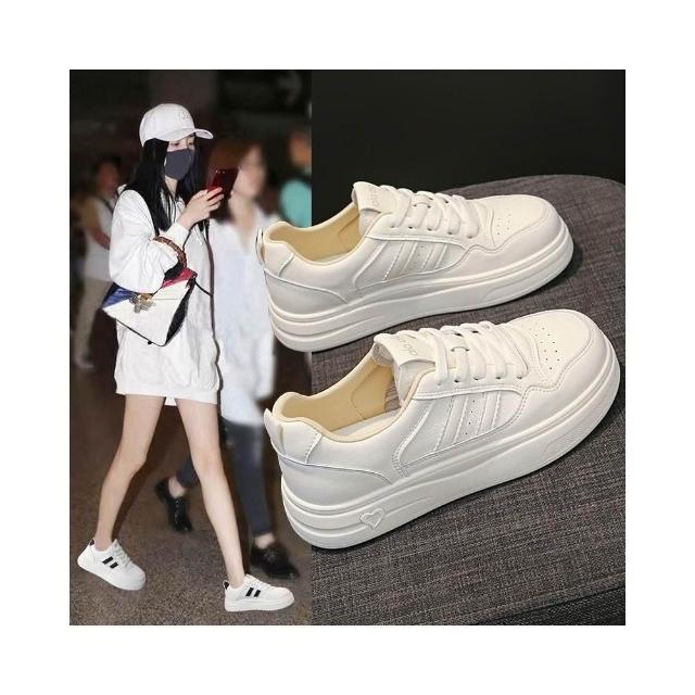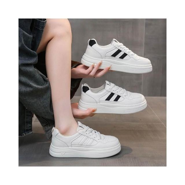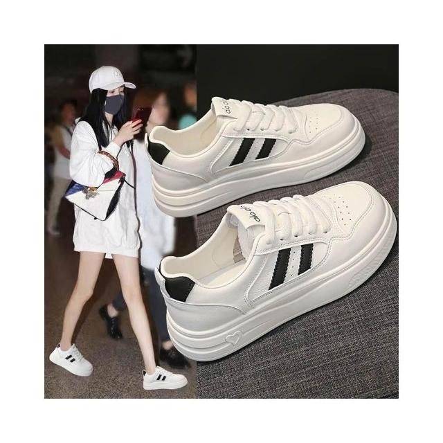 小白鞋女學生時尚簡約百搭平底增高休閒鞋防水止滑厚底運動鞋輕量透氣戶外登山鞋白色大尺碼女鞋寬楦舒適緩震慢跑鞋板鞋耐磨滑板鞋