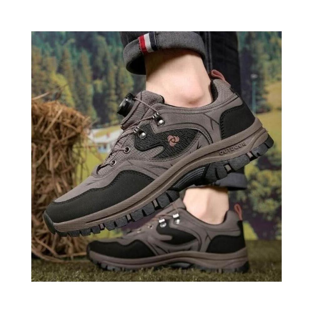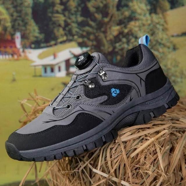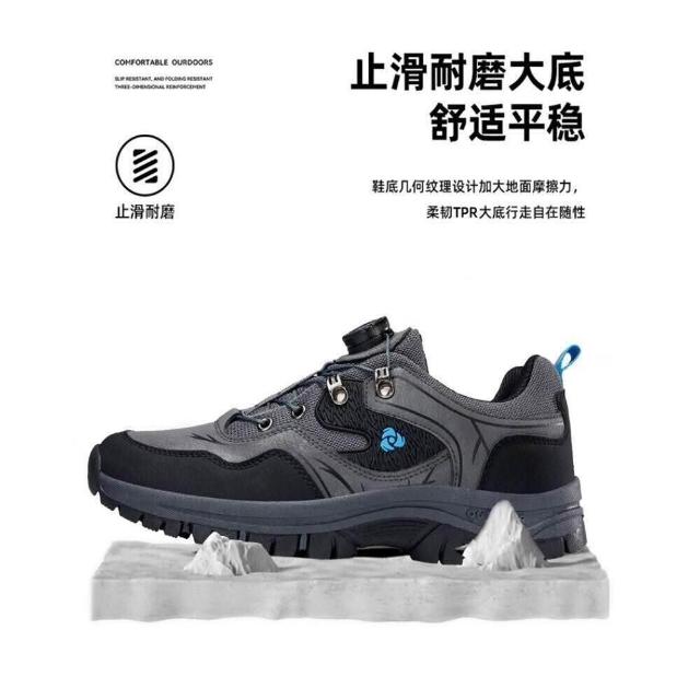 登山鞋男戶外登山越野止滑耐磨防水登山鞋大尺碼寬楦舒適旋轉紐扣運動鞋男輕量透氣健行鞋厚底緩震慢跑鞋防滑鞋黑色休閒鞋徒步鞋子