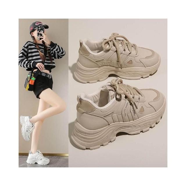 老爹鞋女款內增高厚底防滑小白鞋女生輕便透氣舒適健走鞋白色韓國通勤寛楦休閒鞋女大童運動鞋大尺碼跑步女鞋子久站止滑戶外登山鞋
