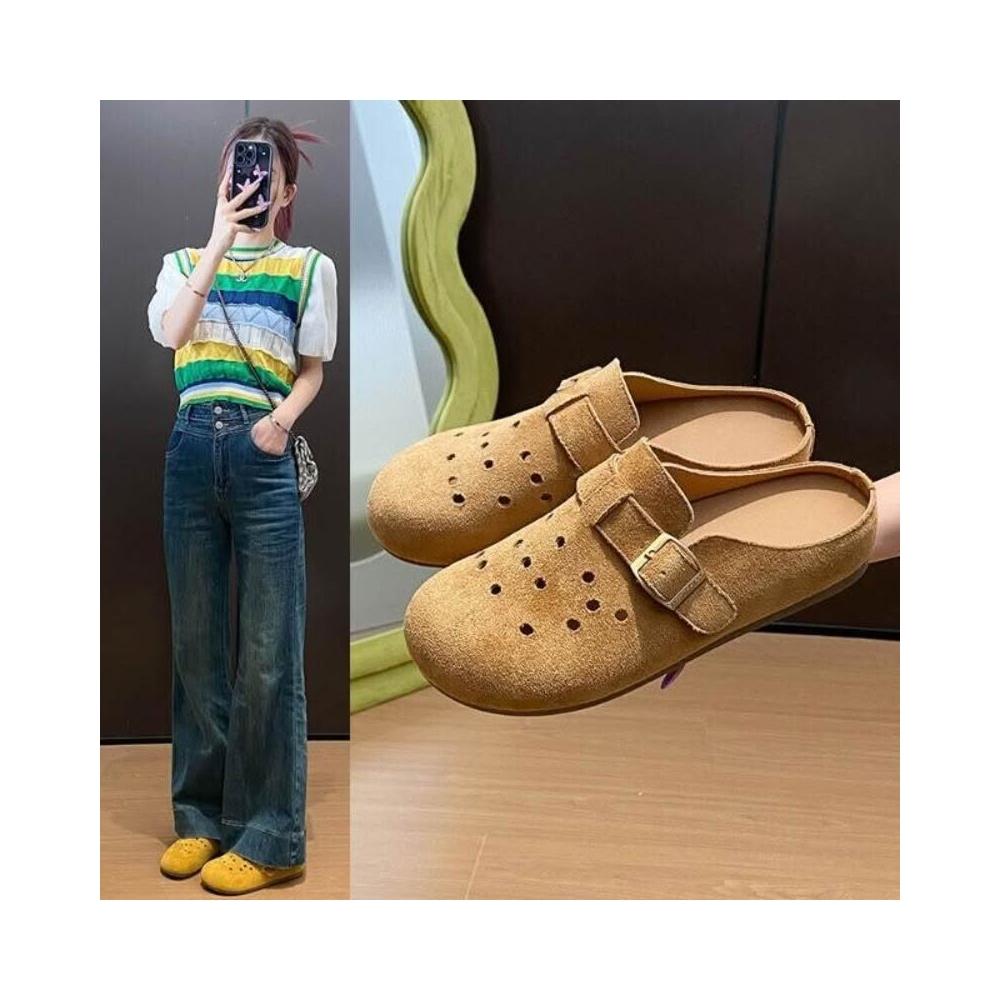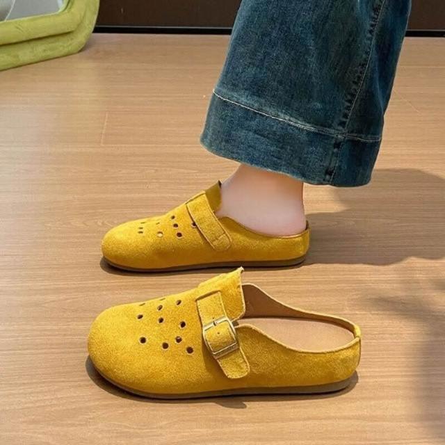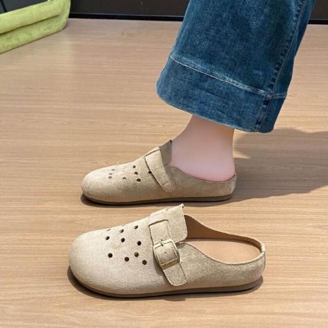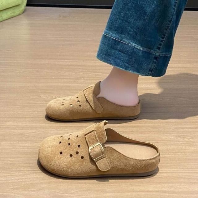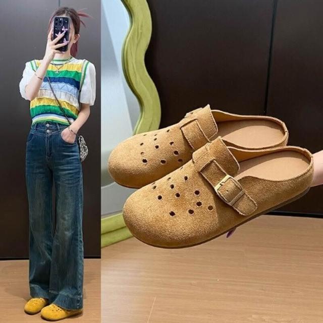勃肯鞋女款厚底防滑防水穆勒鞋大尺碼止滑包頭洞洞拖鞋軟底懶人鞋輕便透氣廚師鞋女生室內室外一腳蹬平底半拖鞋韓國百搭增高休閒鞋