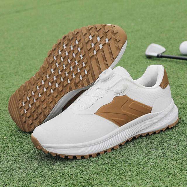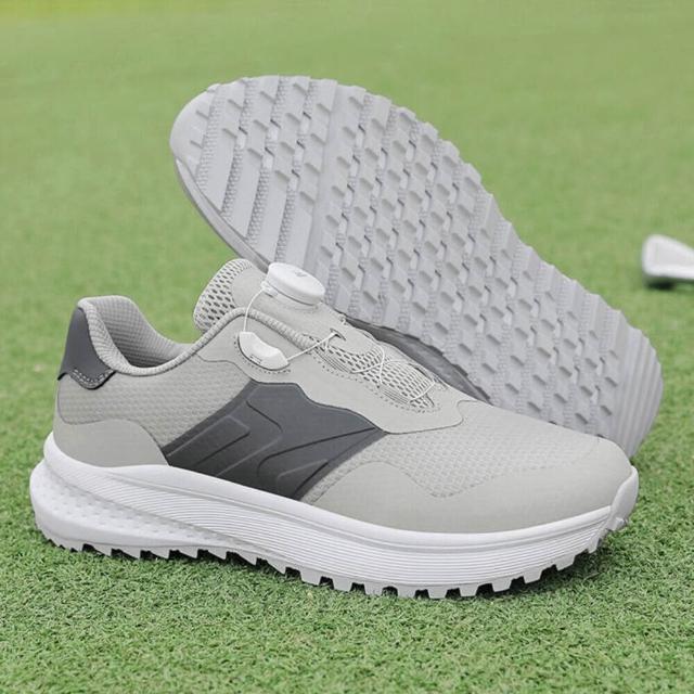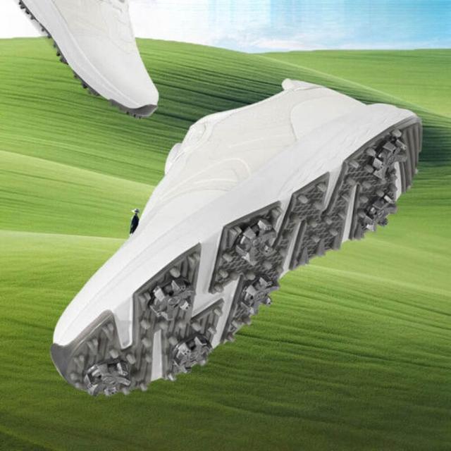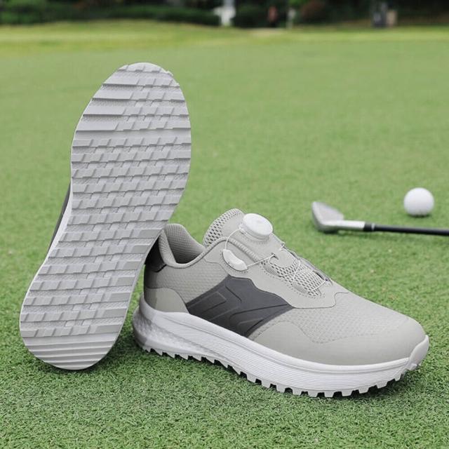 大尺碼帶釘高爾夫球鞋男女防水運動下場訓練球鞋防側滑無釘GOLF運動風休閒鞋久站舒適不累腳防滑慢跑鞋圓頭耐磨懶人鞋個性新潮旋轉紐扣鞋